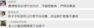 对此,教练给出的回应则是:方式方法可能存在问题,对孩子过于严厉了一些。