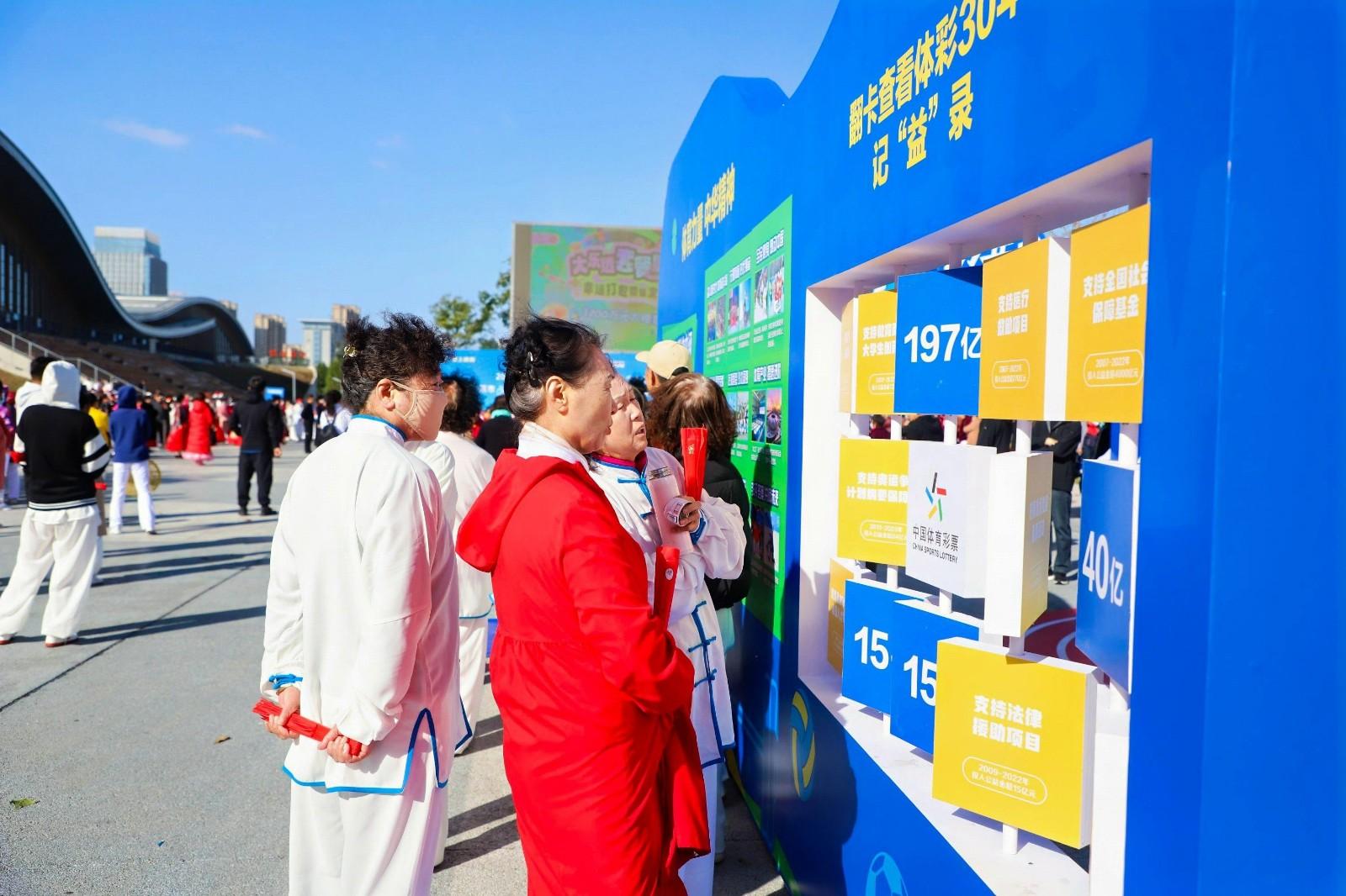 2024中国体育彩票“全民健身季”主题活动在现场设置了产品体验区、潮流打卡区、全民互动区、品牌展示区,通过有趣的互动方式,了解体彩30年来的发展历程和“来之于民用之于民”的发行宗旨。