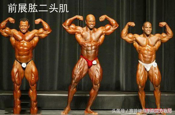 健美比赛肌肉展示:1-2 分钟,肌肉展示部位包括:全身肌肉