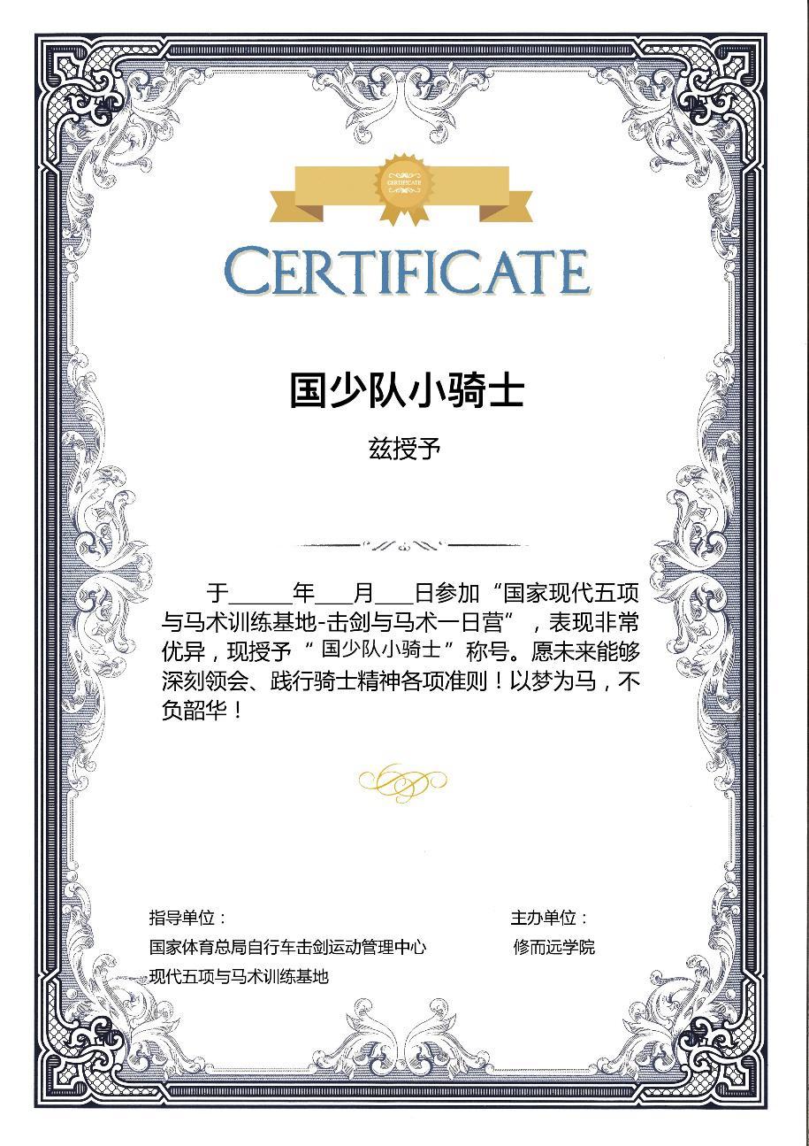 指导机构:国家体育总局自行车击剑运动管理中心、北京体育大学、国家现代五项与马术训练基地 主办单位:修而远学院 营地地址:国家现代五项运动基地(北京体育大学校内)
