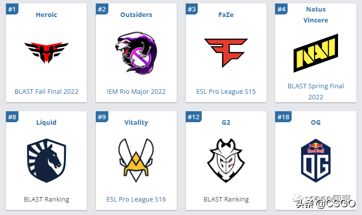 Heroic、Outsiders、FaZe、NaVi、Liquid、Vitality、G2、OG皆是豪门,世界前四悉数到场。谁能问鼎,师母已呆。