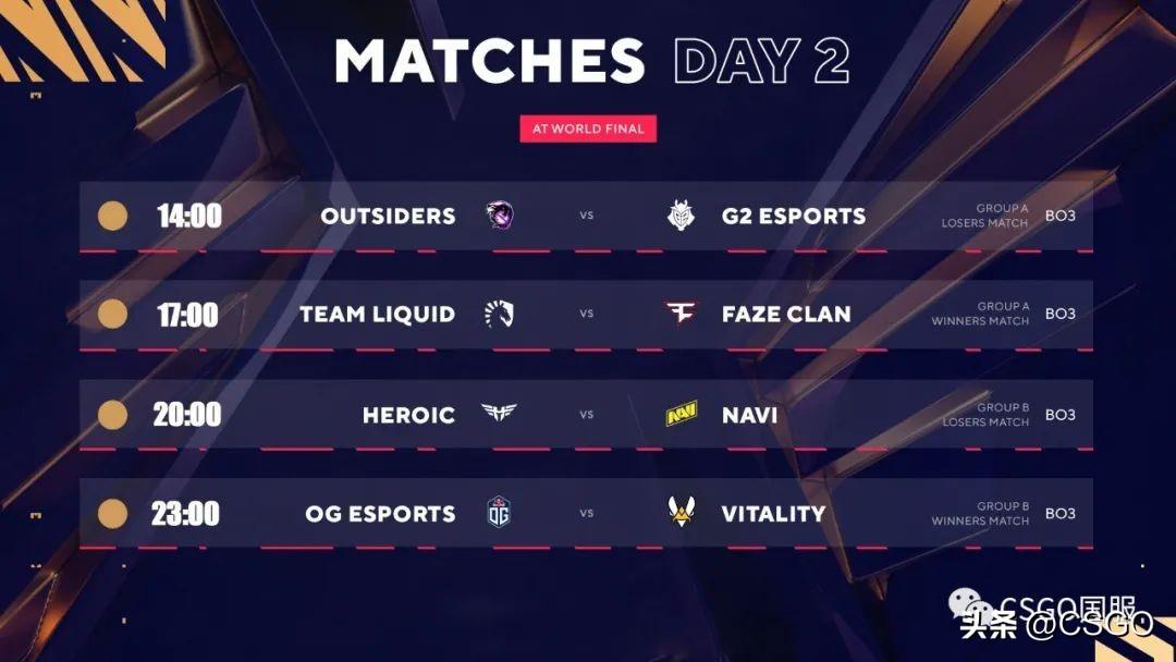 今天14:00起继续4场BO3比赛,焦点战自然是两场败者组较量+液体与FaZe的胜者组较量,将淘汰2支豪门。Outsiders vs G2,Heroic vs NaVi,你们觉得谁将回家呢?