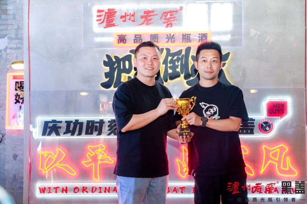 比赛之余,泸州老窖黑盖为大家精心准备了“HEY GUYS!盖世英雄”酒会。泸州老窖重庆片区黑盖江北区负责人叶根在颁奖晚宴上表示,通过此次活动,各行各业优秀人才汇聚一堂,让泸州老窖黑盖又交到了新朋友。作为一款潮流、时尚的高品质光瓶酒,我们将继续支持对生活保持激情的足球运动,让更多人看到、喝到黑盖,感受黑盖的魅力,一起开黑盖,欢聚更畅快。