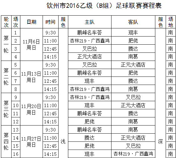 明天赛事(乙级)预告