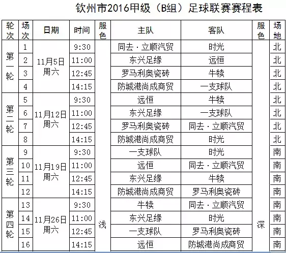 本次初高中的赛事由钦州市足球协会承办,下一轮初中高中赛事将于4月22号到25号将在市一中,二中,四中三个场地进行比赛,请有兴趣的球友届时按时到场观看,附上赛程表一份~