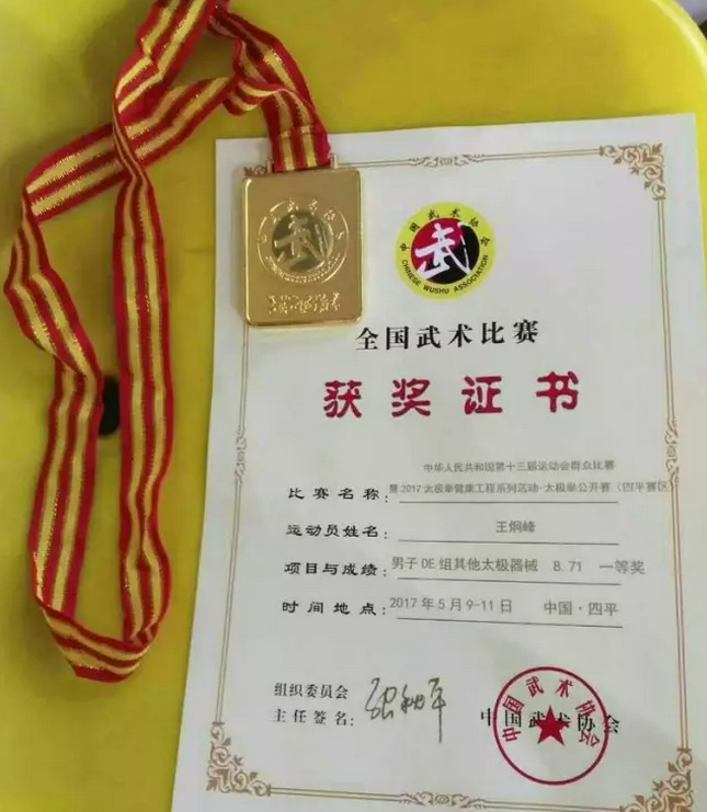 荣获全国武术比赛太极器械一等奖……王炯峰