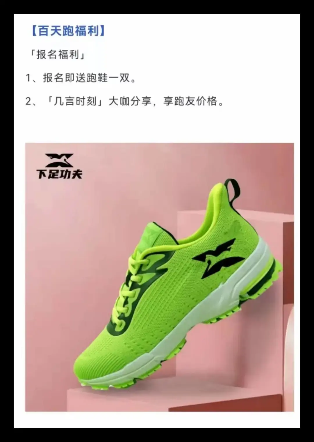 报名百天跑后,关注头条号,私信小编,就可以领取跑鞋喔。