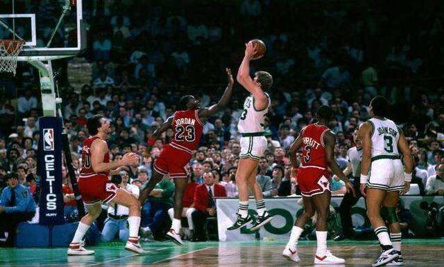 如果你会因此认为那支绿军不过是软柿子,那就大错特错了!他们可能是历史上最为出色的王朝球队——由麦克海尔、伯德与酋长帕里什组成的强悍锋线铁三角,兼具投篮能力、内线杀伤力与威慑力,滴水不漏的防守,常常让试图冲击绿军锋线的明星球员无功而返,同时,他们也是球队的进攻箭头;而后卫线上,坐镇着历史上最好的后卫单防者之一,96年曾被邀请试训科比的大闸——丹尼斯·约翰逊;以及波士顿的漂亮男孩,防守充满小动作甚至是肮脏,极具侵略性的球队现任经理丹尼·安吉。也就是说,在这样一组历史级别的防守球员构成的铜墙铁壁下,乔丹凭借着惊人的技术与体力,不断急袭,突破上篮,盯着两到三人强投杀伤,砍下了难以置信的历史最高分!季后赛63分到底有多可怕?目前最为接近这一神迹的,是目前联盟顶级得分手杜兰特与库里拿下的54分,然而,这中间仍然还有9分的鸿沟般的差距!即使是作为历史顶尖得分手的科比与詹姆斯,季后赛最高分也“仅”是50分与49分。怪不得赛后,伯德无奈地摊手说道:今晚上帝穿着23号球衣打球!然而,锱铢必较的“老姜”伯德,真的会就此罢休吗?当然不会!在称赞过后,这位历史上有名的逼王狂妄放话:下场乔丹要是能拿20分,我直接退役去开卡车!这下,可谓在惊魂未定的篮球界,又放下了一枚重磅炸弹!