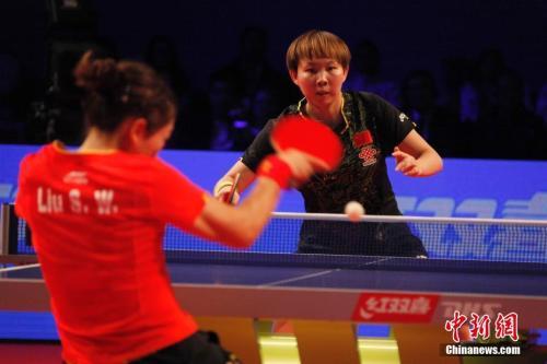 朱雨玲(黑衣)准备迎击刘诗雯的来球。 中新社记者 余瑞冬 摄