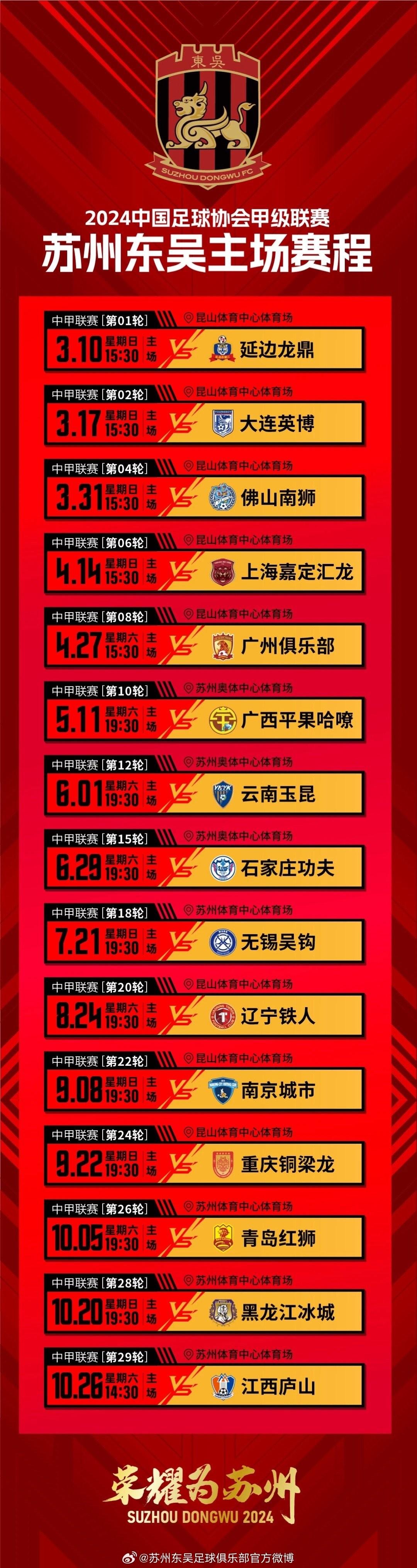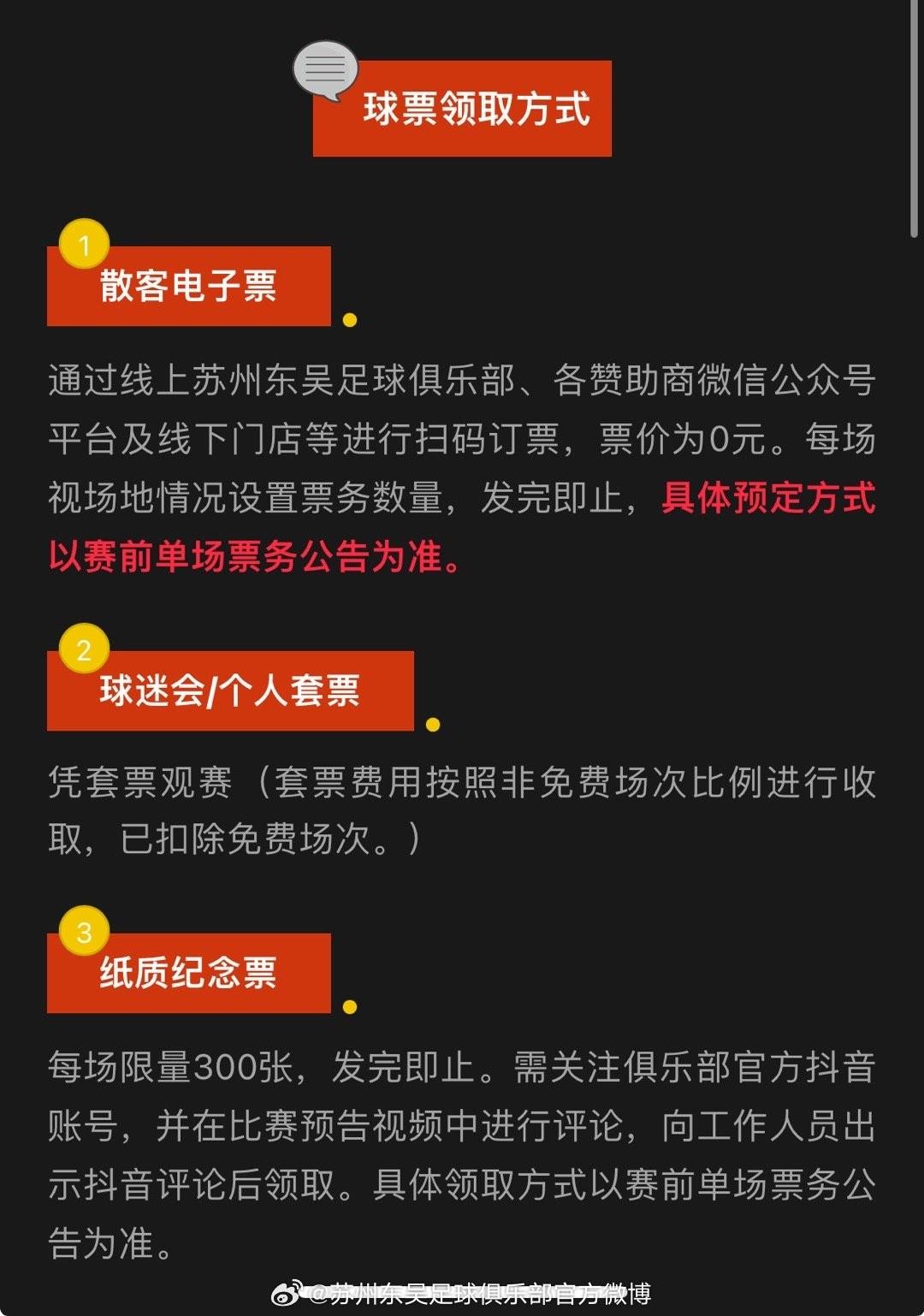 苏州东吴官方消息,新赛季前五场主场赛事将向公众提供单场免费球票。