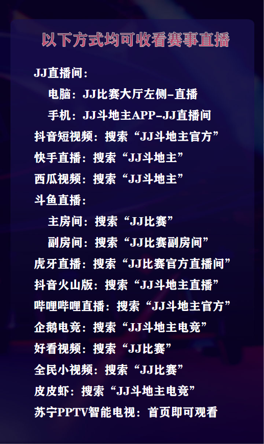 手机: 安卓手机下载并安装“JJ斗地主”,点击—JJ直播—赛事—往期视频。