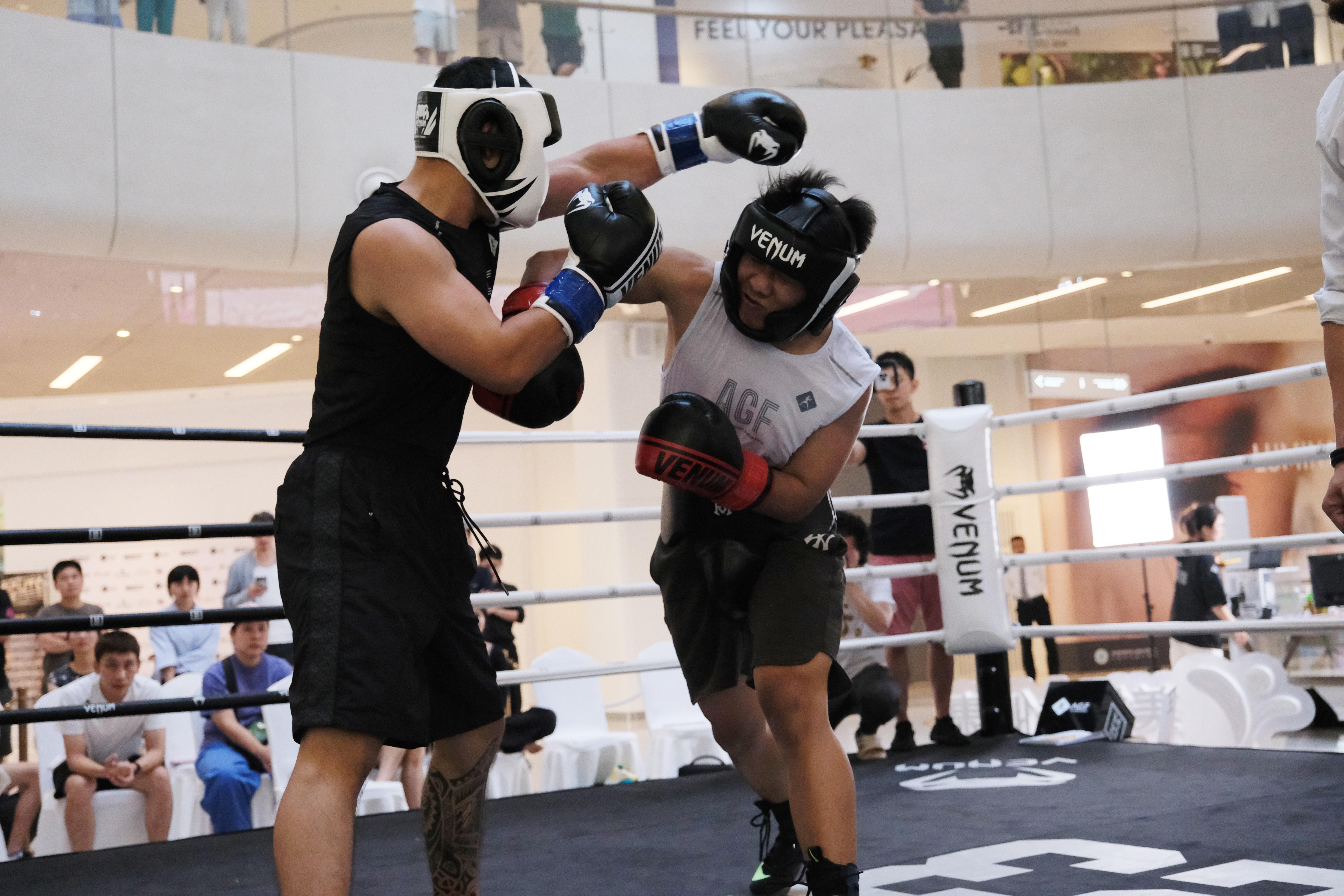 此番“AGF傲骨之战”从定妆照的拍摄、宣传海报的发布、赛前称重,几乎所有正式比赛中的环节一应俱全。陈先生直言:“我们票友还是很追求这份仪式感的,另外过去一些比赛只是放在某个拳馆,这次比赛放在人流较多的商圈举行,观众多了,自己也感到挺自豪的。”