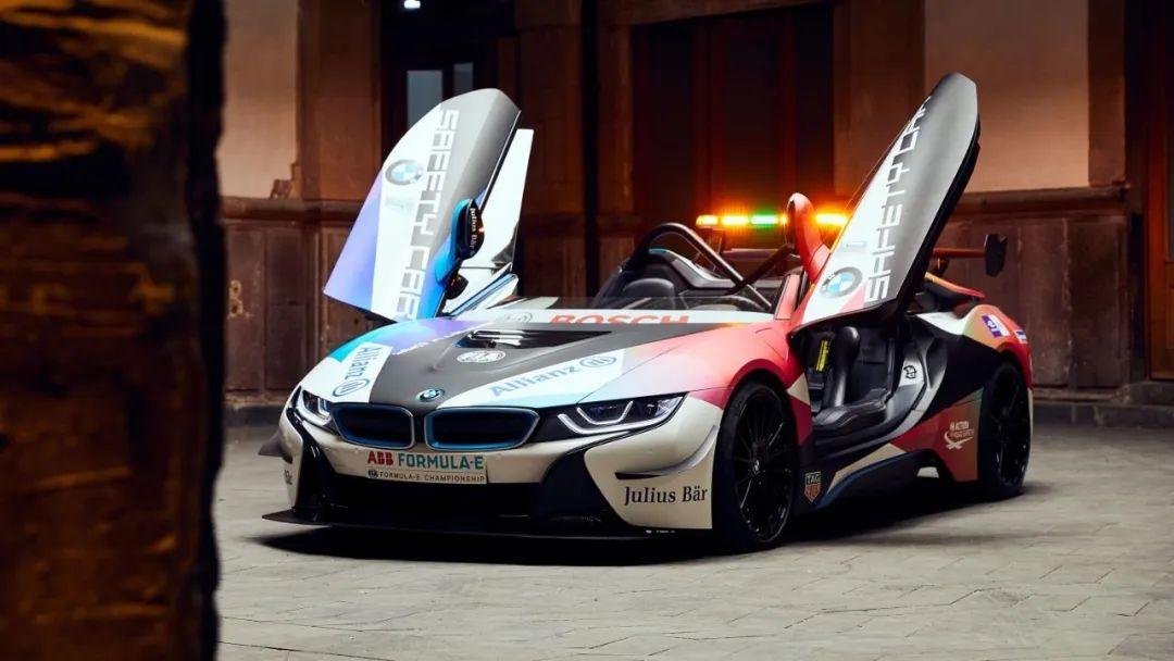 宝马从2014年的首届FE起就成为官方安全车的供应商。宝马i8 Roadster在2019年正式加入FE安全车的行列。该车是由宝马i部门研发制造而成,它也是世界上首款采用开放式驾驶舱的安全车,通俗点说就是敞篷安全车。