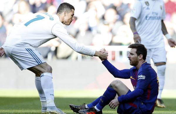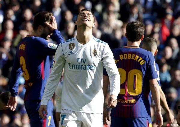 上半场,梅西的罚球不慎击中C罗,这似乎也预示了本场比赛双方角力的结果。