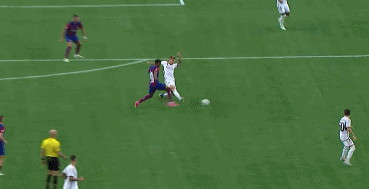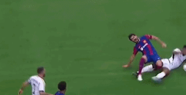 第34分钟,卡马文加和阿劳霍拼抢,卡马文加整个身体压在阿劳霍的左脚脚踝上。巴萨球迷揪心不已,担心阿劳霍重伤。裁判黄牌警告卡马文加。好在阿劳霍并无大碍。
