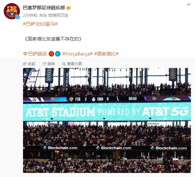 赛后巴萨官博晒出了全场比分图,并配文表示:“《国家德比友谊赛不存在的》。”