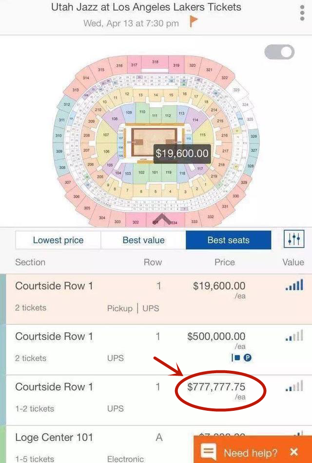 要知道,一般来说一支球队的平均票价都在60、70美元左右,即便是联盟30支球队中门票均价最贵的湖人,平均门票也不过200美元,而全明星周末一场比赛的门票均价却直接比正常门票贵出60倍左右,可谓十分恐怖了。