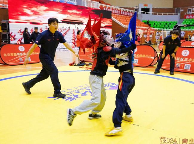赛场上,武术少年们有的认真展示着健身长拳、传统拳术等套路,一招一式,尽显少年本色;有的拿起武术器械,刀枪剑棍身法自如,虎虎生威。他们目光如炬,坚定执着,以青春之活力诠释着中华武术的博大精深,展现出了新时代青少年的蓬勃朝气和昂扬斗志。创新体育赛事 “精武夺旗”作为西城区青少年体育赛事的“明星”,已经连续开展四年,受到广大中小学生的喜爱。