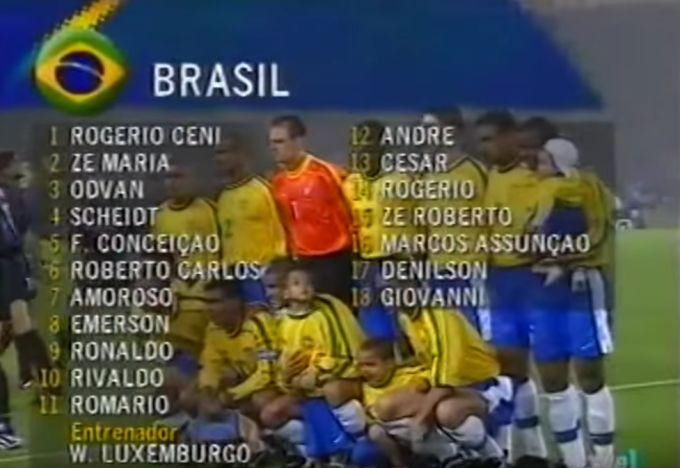 巴西队是前一年世界杯的亚军,球队由新任主教练卢森博格领衔,22岁的9号罗纳尔多搭档33岁的11号罗马里奥,组成一年前未能在世界杯上亮相的“RR组合”,两名前锋都曾在巴塞罗那有过高光时刻。