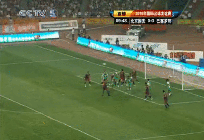 脚下配合打得细腻,但巴萨破局还是靠的防守反击。这是国安一次角球进攻不成,巴萨球员弧顶得球后迅速发动反击。在这次角球战术中,国安球员要么堆积在禁区内,要么压在30米区域附近,禁区弧顶这个区域反倒是空了出来,让巴萨拿球的队员非常轻松。