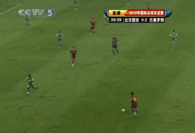 中路的球员向一侧移动,那与之对称的另一侧会出现一个空间,梅西正在那里接应。中路防守球员回身过去,已经慢了不止一拍。梅西禁区前横向盘带闪出打门的空间,但打门的质量实在一般。