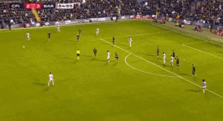 这是下半场刚刚开始,巴萨在边路形成的连续传球。看看这连续四次的传球形成的传中机会。