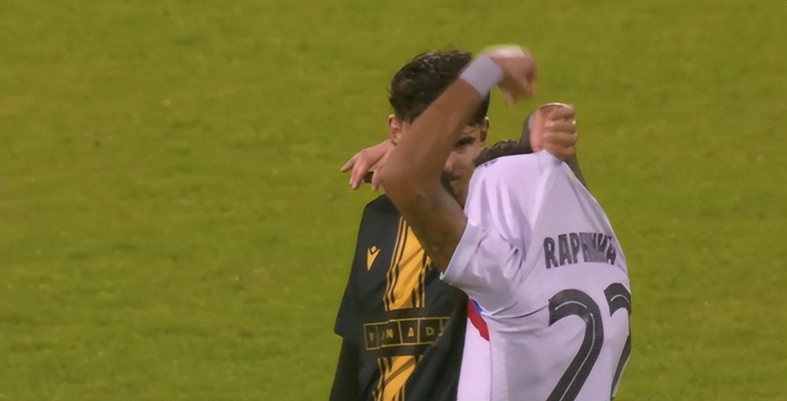 第77分钟,阿尔巴禁区左侧低平球横扫到门前,拉菲尼亚在后点轻松打空门得手,巴萨3-2领先。