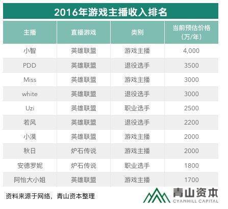 直播平台的兴起给了职业选手扩大影响力、增加收入的机会。并且选手退役后可以通过做直播来持续积累人气,取得高昂收入。由于近几年游戏直播平台竞争激烈,主播身价也水涨船高。排名前10的游戏主播身价均达到了每年千万元以上,明星效应与造富效应凸显。