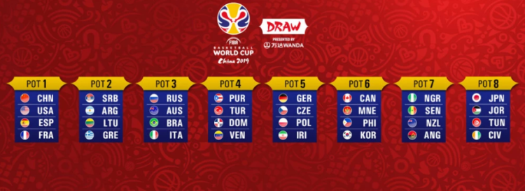 其中东道主中国男篮将锁定落位在A组,并在北京开始篮球世界杯的小组赛。而卫冕冠军美国队,则锁定E组,从上海开始他们的篮球世界杯之旅。