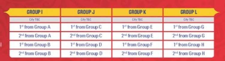 根据赛程安排,A组的比赛将会在北京进行,B组的比赛在武汉进行,C组比赛将在广州进行,D组比赛在佛山进行,E组比赛在上海进行,F组比赛在南京进行,G组比赛在深圳进行,H组比赛将在东莞进行。