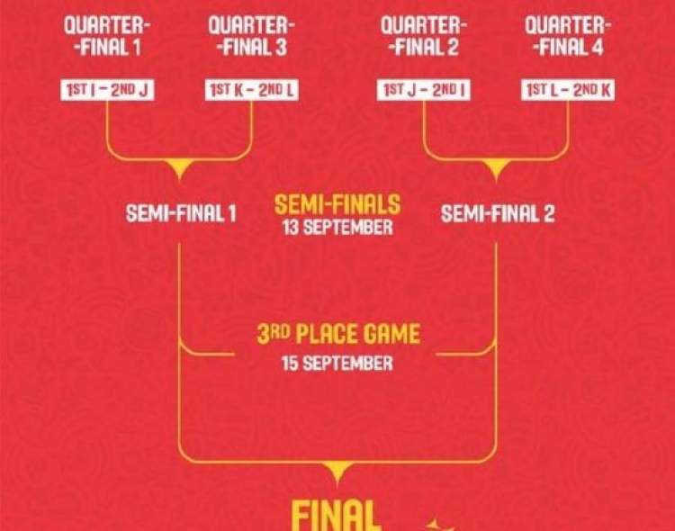进入了淘汰赛阶段 ,所有比赛将以单场淘汰制进行。而最终的决赛将在9月15日进行。根据上述赛制规则,在抽签仪式上各支强队所进入小组和划分的晋级半区也将随着抽签结果一并出炉。