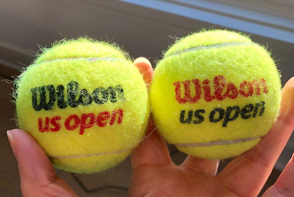 上图为美网系列赛曾经采用的两种网球,左边的网球用于男子比赛,右边的网球用于女子比赛