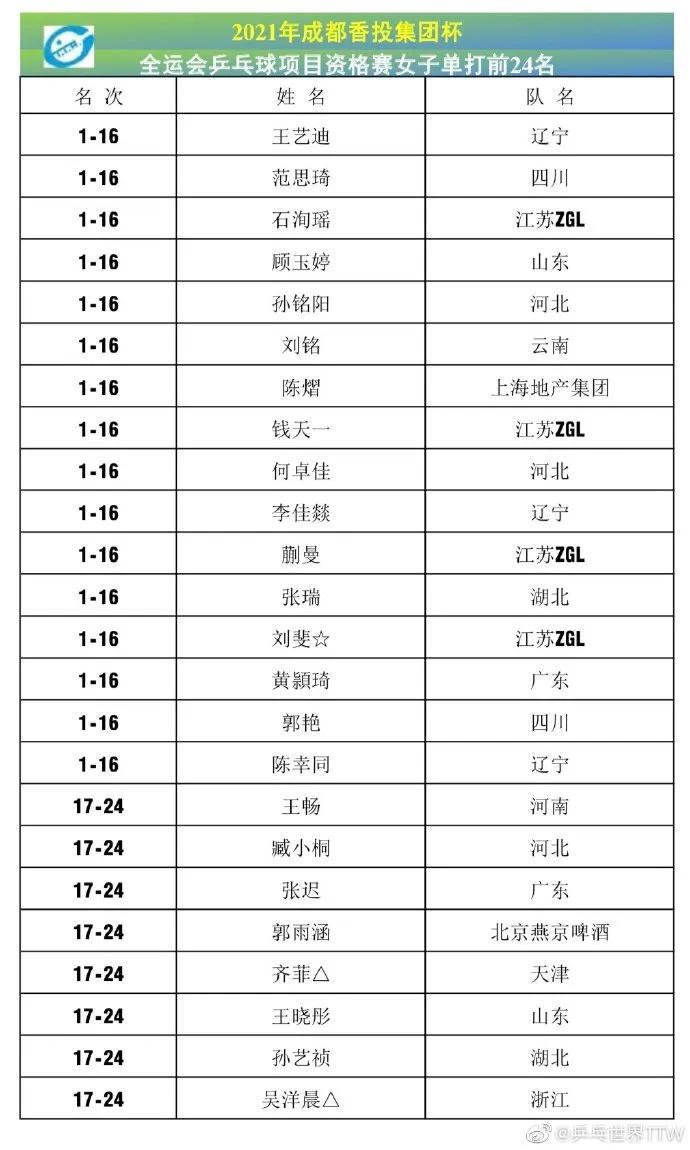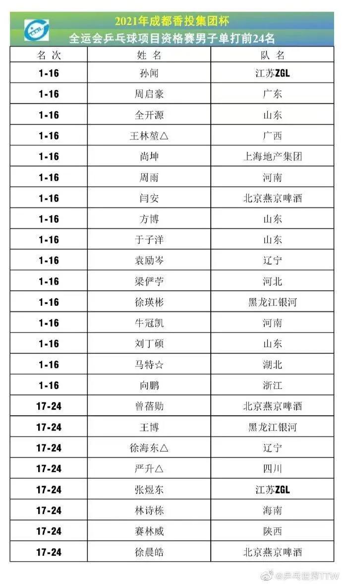 2021全运会乒乓球项目预选赛,经过5轮激烈厮杀,男单24名选手晋级决赛阶段。