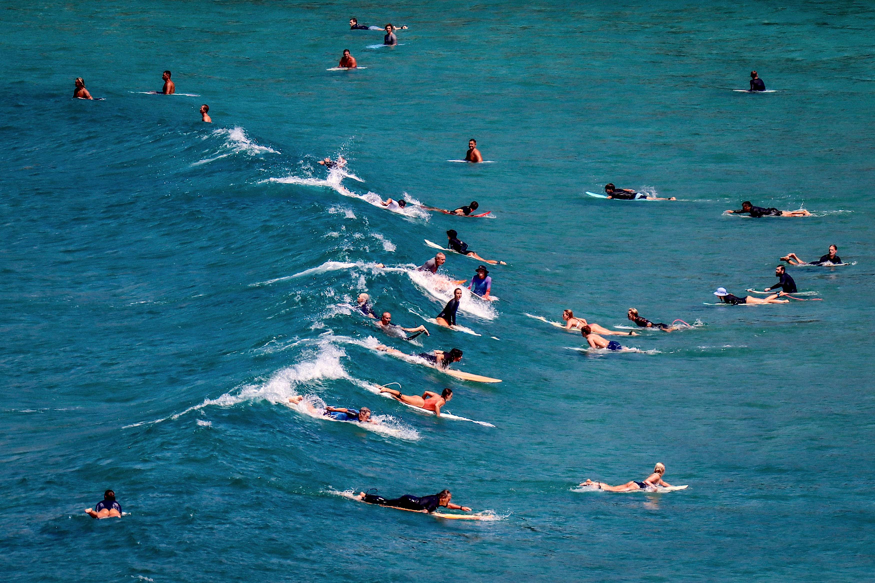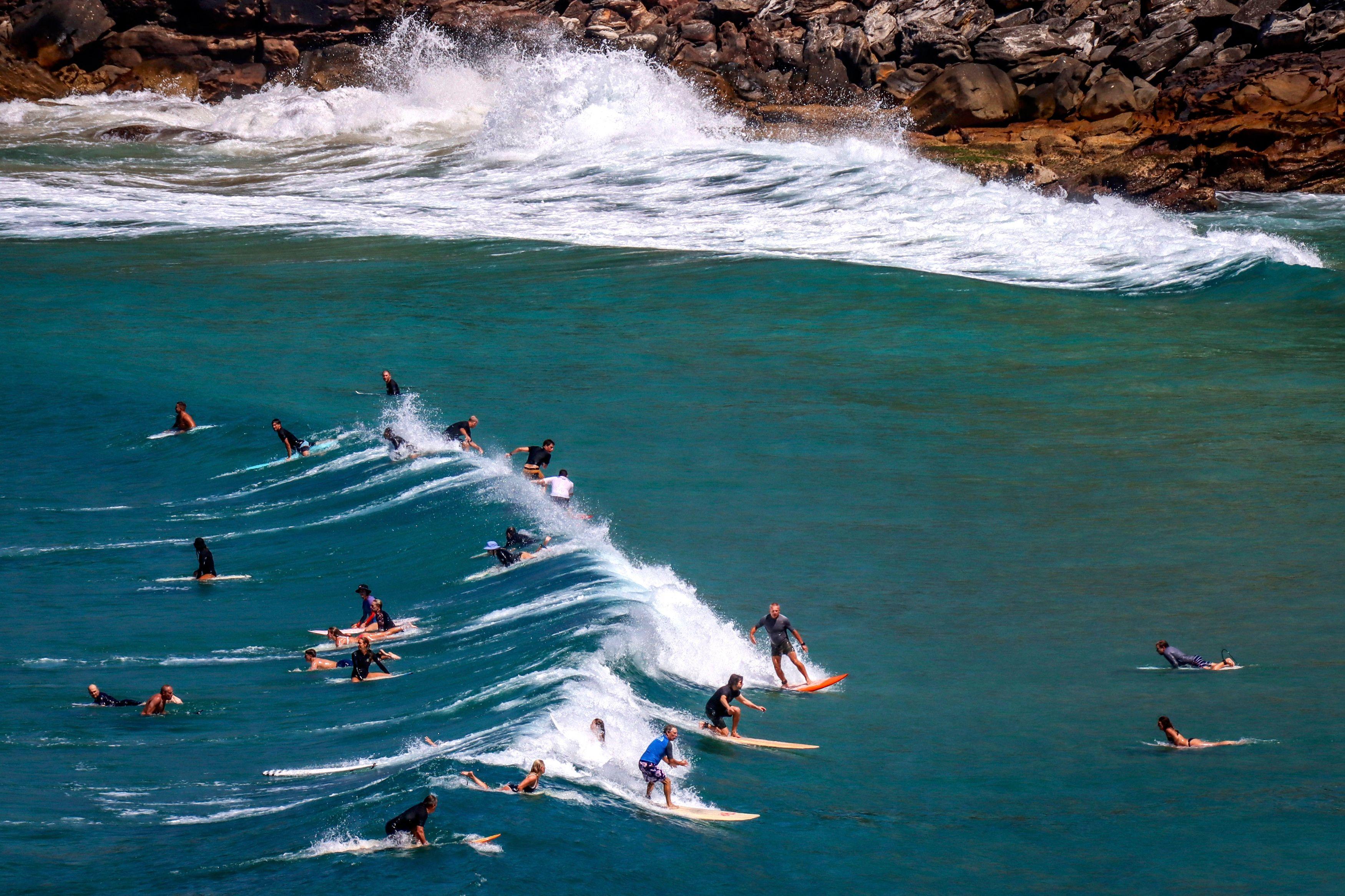 3月12日,冲浪爱好者在澳大利亚悉尼的弗雷什沃特海滩冲浪。 新华社/法新