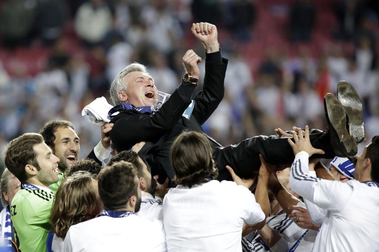 打进“天外飞仙”十二年后,也就是2013—2014赛季,齐达内的身份从球员变成了皇马的助理教练。那个赛季和他之前以球员身份经历的2001—2002赛季以及之后以教练身份经历的2017—2018赛季非常相似。三个赛季皇马在西甲以及欧冠赛场之外颗粒无收。在欧冠却马踏连营,鹰击长空。