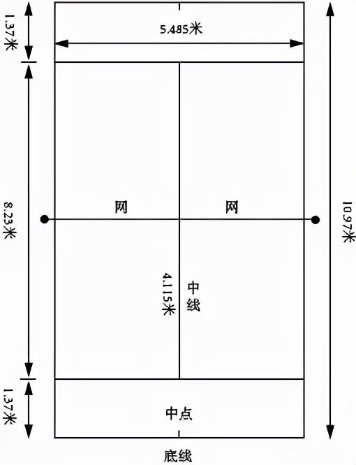 短式网球使用的场地是标准网球场地的1/3(含球场侧后应留的空地)。长度为10.97米,宽度为5.485米。用球网将全场横隔为二等区,网柱高0.85米,网长不短于6米,网中央高0.8米。