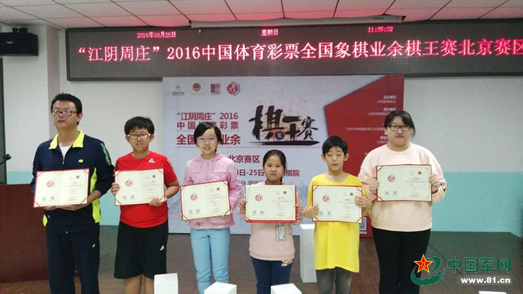 中国军网9月26日电 剑挥报道: “江阴周庄2016中国体育彩票全国象棋业余棋王赛北京赛区决赛”,于9月20、21日举办老年组专场, 9月24日、25日举办公开组、少年组和儿童组,各组别的优胜者将获得代表北京市参加全国象棋业余棋王赛总决赛资格。同时,棋王赛优秀选手,将有资格直接晋级由国家体育总局与咪咕互动娱乐有限公司联合主办的全国网络智力运动会总决赛。