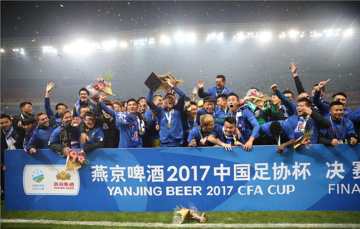 2017赛季足协杯决赛,申花和上港之间的实力差距更大,但申花最终凭借客场进球数多的优势,在上海体育场捧起了冠军奖杯。