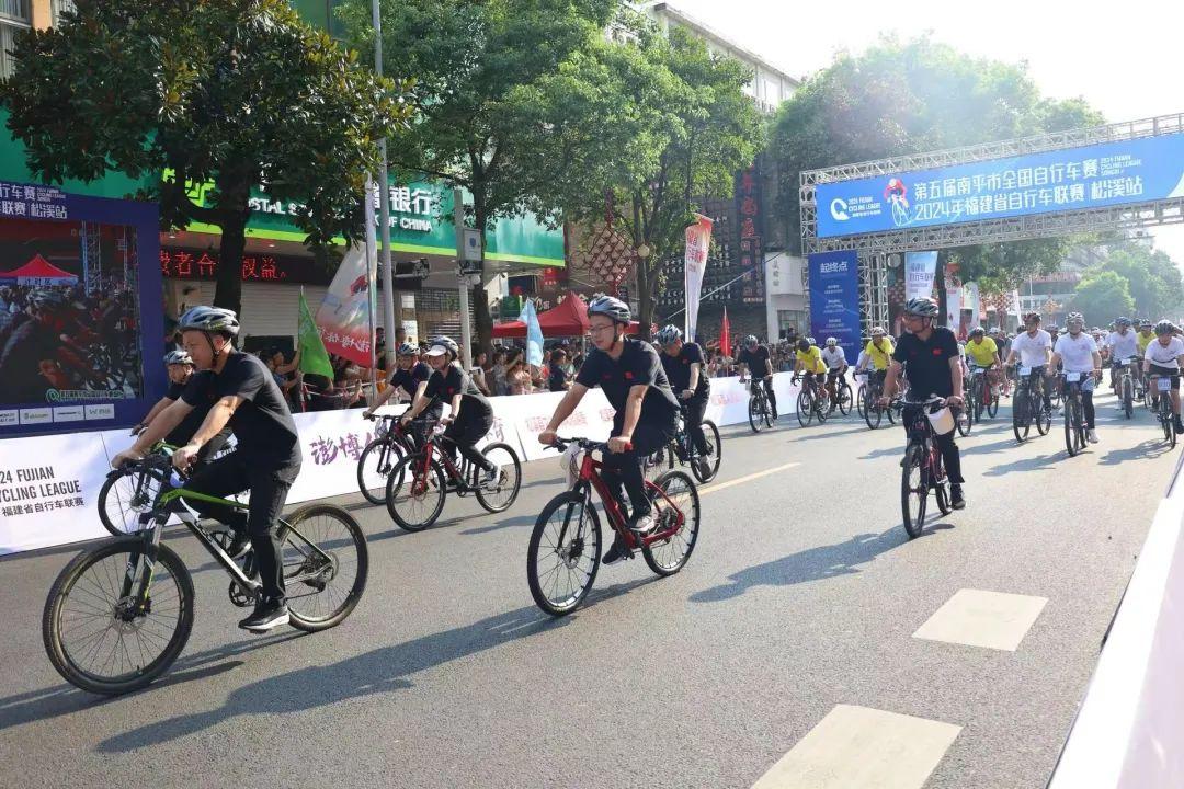 上午7时50分,随着一声清脆的发令笛响,参加活动的领导组成的荣誉骑行方阵率先出发。随后,参赛选手们如离弦之箭般冲出起点,沿着9.7公里的环城赛道路线,途经五通路口、长巷大桥、解放街拱门等地,沿途的自然风光与人文景观令人心旷神怡,也让选手们深刻体验到松溪的独特魅力。