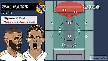 这就意味着C罗和本泽马这样的射手,主要精力就是在门前寻找机会,而不是非得拉到边路的区域。