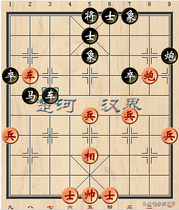 布局黑方送3路卒,拔巡河车捉过河兵,先弃后取。