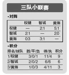 可以看出,在三队的小联赛中,权健3胜1负拿到9分,智诚2胜2负拿到6分,黄海1胜3负拿到3分。可以说,权健形势最好,智诚次之,黄海最差。如果两队同分,还要对比预备队的成绩。