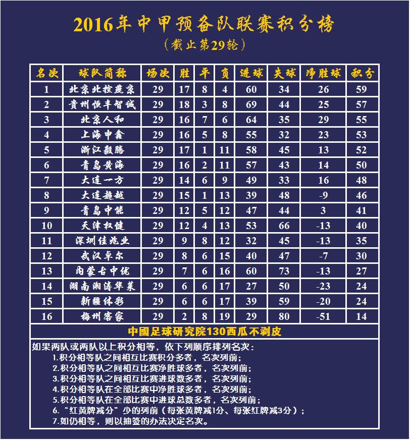 若没有同分的情况,那么,将按照积分高低排列,前两名拿到中超资格。如果积分相同,按照中甲的积分规则,排名要看以下条件:(同分队间)积分、净胜球、进球、预备队成绩;(16队)净胜球、总进球、红黄牌(黄牌减1分、红牌减3分);抽签。