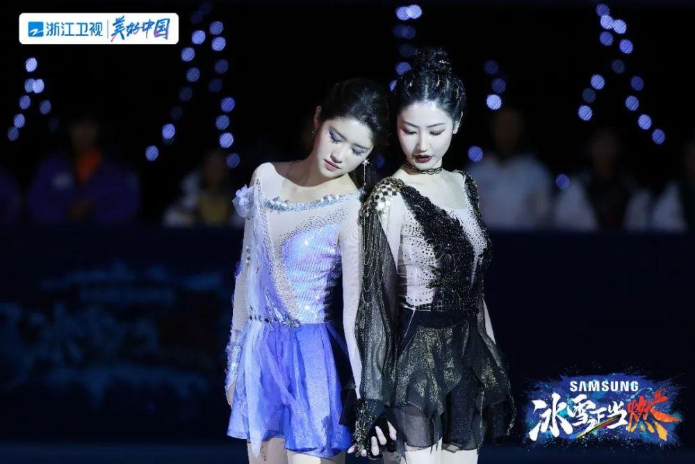 继上周惊艳的国风滑雪后,本场赛事吴尊战队又上演了梦幻的武侠风,演绎了江湖侠气的勇者之战。一身侠士装扮的宋林书和刘瑞旭在冰上轻盈飘逸地滑行,配上武林风的背景音乐直接将全场带入如痴如梦的刀剑武侠世界,引得全体成员阵阵惊叹。5位评委先后亮出2个满分,也一度让成绩领先的吴奇隆俱乐部担心不已。虽然吴尊战队因为技术难度稍显逊色最终屈居第二位,但两位队员奉献的精彩武侠冰舞仍然成为了当期最大亮点之一。