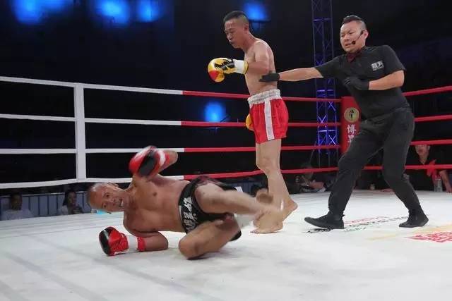 在2015年重庆的一场职业比赛中,61岁的陈铭对战43岁的拳手姚斌。这对手的年龄也是蛮拼的。