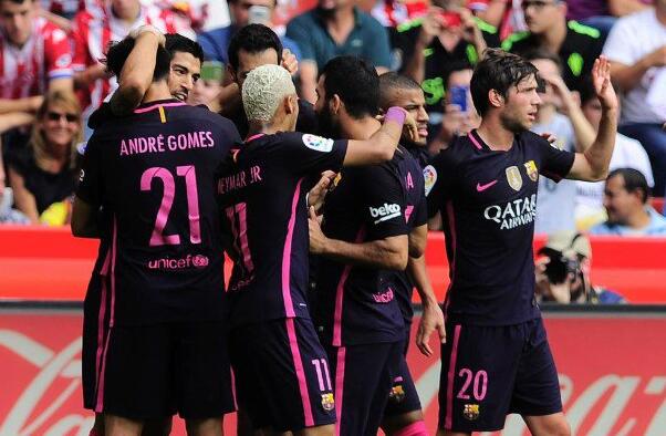 北京时间9月24日晚22点15分,2016-17赛季西甲联赛第6轮的一场比赛在莫里农球场展开角逐,巴塞罗那客场挑战希洪竞技。上半场第28分钟,图兰助攻,苏亚雷斯打破僵局。第31分钟,罗贝托助攻,拉菲尼亚扩大比分。最终上半场比赛结束,巴塞罗那客场暂时2-0领先希洪竞技。
