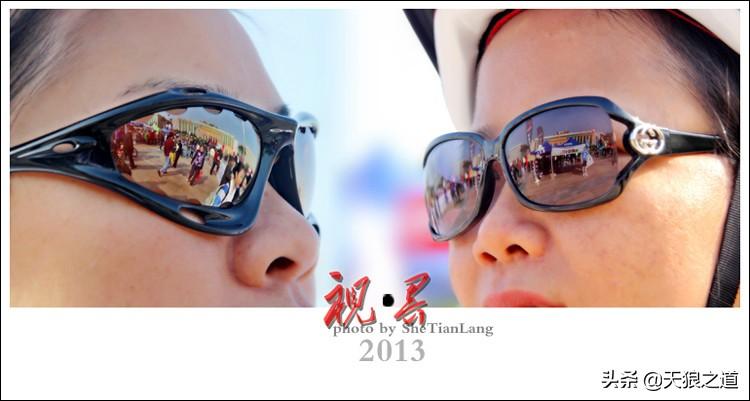 1、以点带面,利用赛车手墨镜反射赛事现场,从侧面表现赛事现场的盛况。