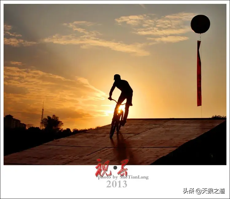 3、剪影:如遇上好天气,可以尝试剪影拍法。 一般尽量选择日出或日落前后,太阳的光线比较温柔,低角度仰拍,抓取车手动作优美的瞬间。