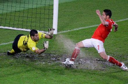 2008年6月12日,欧洲杯小组赛第二轮,两支球队都是站在悬崖旁边,再输就可以提前预订返程的机票了。在瓢泼大雨中,上半场瑞士队首先打破僵局,由哈坎-雅金先打进一球,土耳其人第57分钟扳平比分。到了全场补时的最后一分钟,土耳其在瑞士腰间捅上了致命一刀,阿尔达-图兰打进了价值千金的进球。