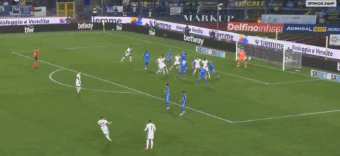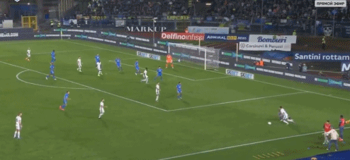 下半场易边再战,第50分钟,巴斯托尼在前场左侧传中,皮球传得比较深,达米安在后点底线前将球救回,禁区内的弗拉泰西接球左脚抽射,皮球碰到后卫折射击中横梁入网,国米1-0恩波利。